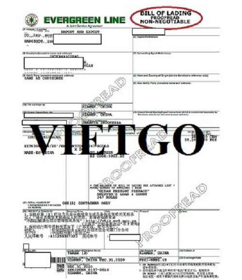 Dưới đây là bản vận đơn đường biển của đơn hàng xuất khẩu đồ da từ Indonesia tới Trung Quốc của công ty vị khách hàng vào ngày 31/12/2020: