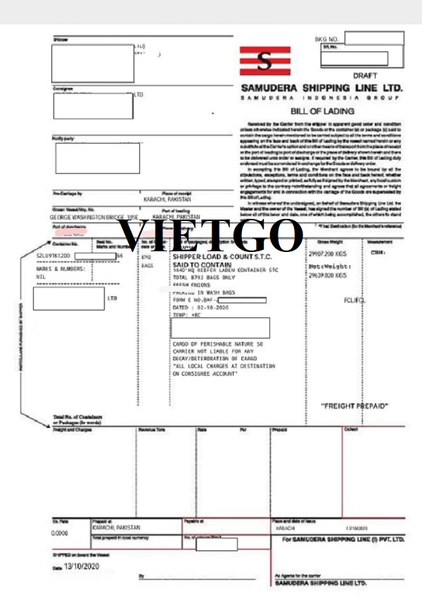Dưới đây là bản vận đơn đường biển của đơn hàng nhập khẩu hành từ Pakistan tới Sri Lanka của vị khách hàng vào ngày 01/10/2020: