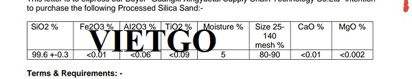 VIETGO xin gửi tới Quý nhà cung cấp thông tin về đơn hàng cát silica đến từ anh William.