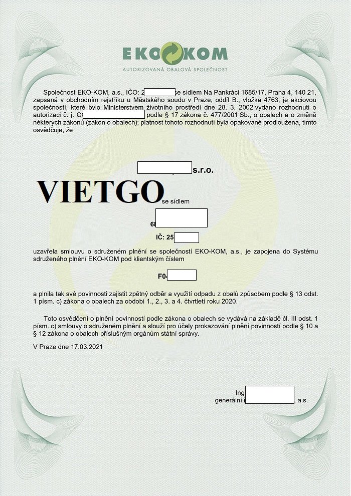 Tên công ty: ██████████ S.R.O