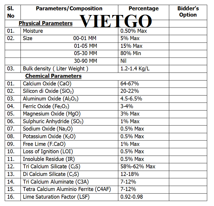Vừa qua, VIETGO có nhận được yêu cầu được kết nối với nhà cung cấp tại châu Á cho sản phẩm clinker từ vị khách hàng người Canada. Anh Kenny hiện đang giữ vị trí Giám đốc tiếp thị quốc tế của một công ty thương mại có tên là ██████████ INC. Liên hệ trực tiếp với VIETGO, vị khách hàng có gửi tới đơn hàng nhập khẩu sản phẩm clinker với số lượng là 50.000 tấn mỗi tháng, cung cấp cho một đối tác tại Bangladesh.