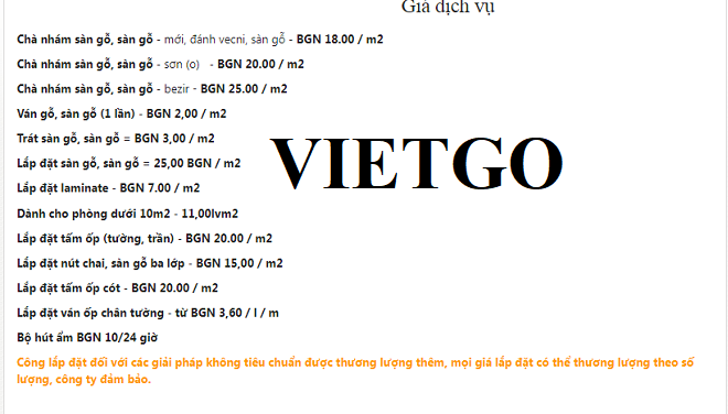 Hình ảnh bảng giá dịch vụ của công ty vị khách hàng