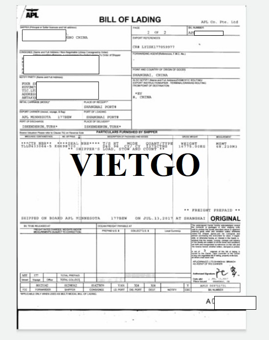 Dưới đây là một số hình ảnh vận đơn đường biển nhập khẩu thuốc từ Trung Quốc sang Thổ Nhĩ Kỳ mà công ty ông Hamid đã thực hiện thành công: