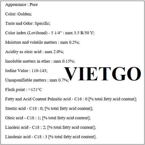 Thông tin chi tiết về sản phẩm dầu ăn xin được gửi đến Quý doanh nghiệp như sau: