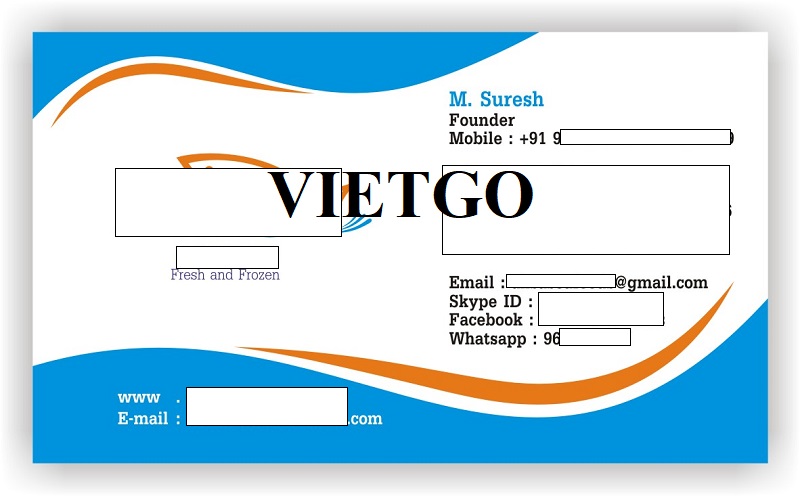 Nhờ cuộc nói chuyện, VIETGO nhận thấy ông Suresh là vị khách hàng tiềm năng, hứa hẹn sẽ mang lại cơ hội hợp tác tốt đẹp với các nhà cung cấp không chỉ cho đơn hàng này mà còn cho những đơn hàng tiếp theo. Vì vậy, Quý nhà cung cấp có thể đáp ứng cho đơn hàng này, vui lòng liên hệ với vị khách hàng theo thông tin được cung cấp dưới đây.