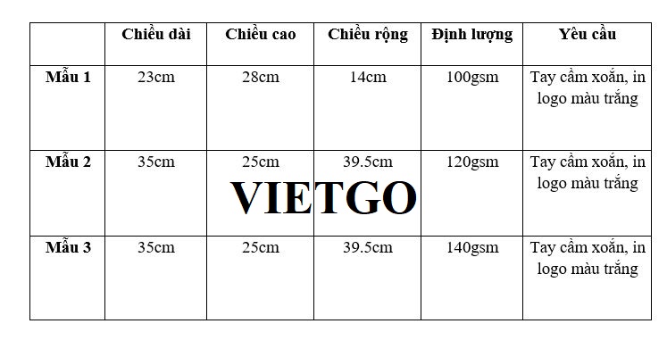 VIETGO xin gửi tới Quý nhà cung cấp thông tin về đơn hàng túi giấy đến từ vị khách hàng tiềm năng, anh Dongjin.