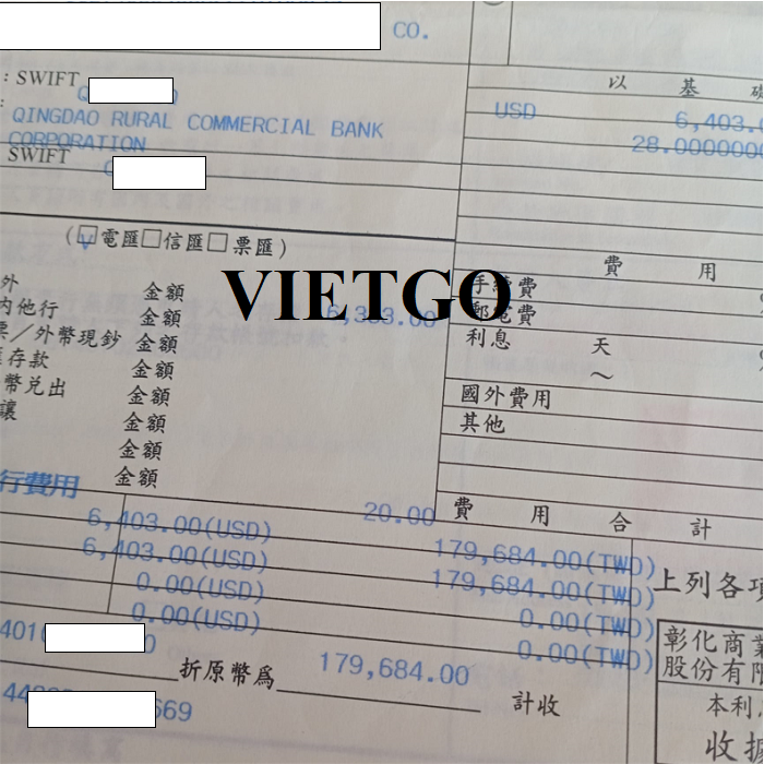 Hình ảnh hóa đơn thanh toán cho đơn hàng nhập khẩu bí đỏ của công ty vị khách hàng