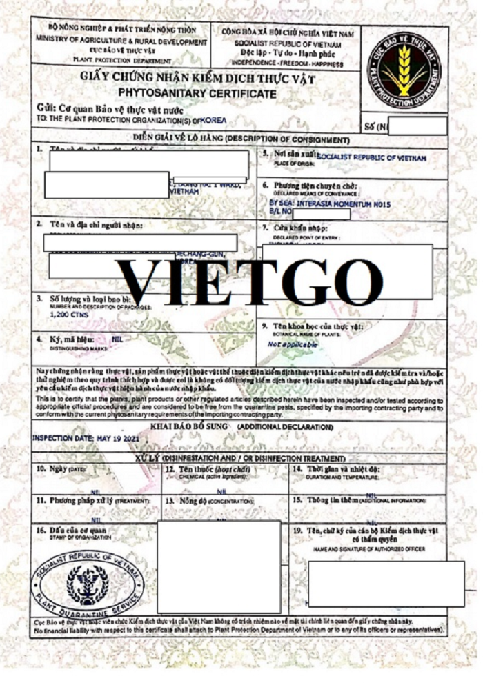 Hình ảnh giấy chứng nhận kiểm định thực vật
