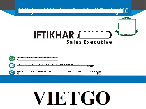 Ông Iftikhar – Giám đốc mua hàng của công ty AL ██████████ LLC – liên hệ và mong muốn VIETGO tìm kiếm nhà cung cấp hạt điều cho đơn hàng của công ty ông tại thị trường UAE.
