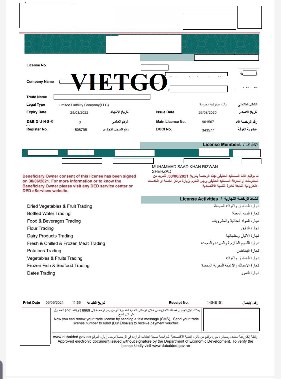 AL ██████████ LLC có trụ sở chính tại Dubai, UAE, là công ty chuyên kinh doanh các nguyên liệu thô và thực phẩm tươi. Đồng thời, công ty cũng phục vụ và cung cấp các loại thực phẩm đông lạnh, chủ yếu là thịt cho nhiều nhà bán buôn và chuỗi siêu thị trên phạm vi thị trường trong nước.