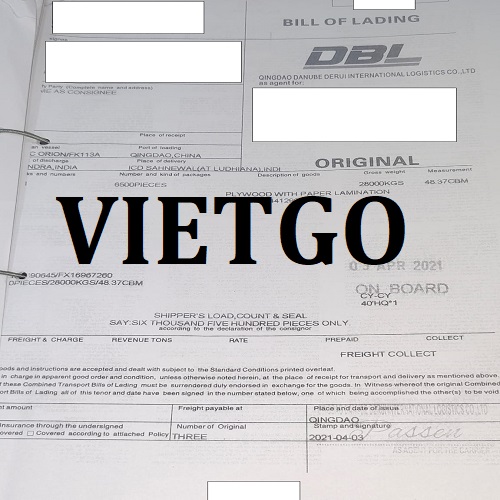 Dưới đây là bản vận đơn của chuyến hàng nhập khẩu gỗ dán từ Trung Quốc mà công ty vị khách hàng đã thực hiện thành công vào ngày 04 tháng 03 năm 2021: