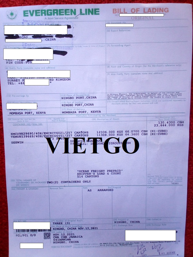 Hình ảnh vận đơn nhập khẩu bồn cầu từ Trung Quốc sang Kenya ngày 12/11/2021