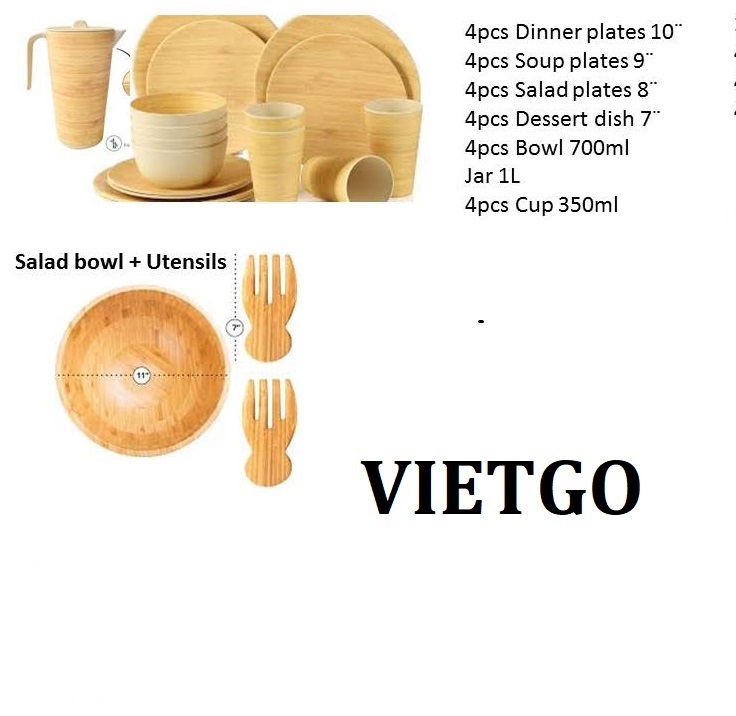 Cô Angie vừa qua đã đại diện cho công ty mình liên hệ với VIETGO để tìm kiếm nhà cung cấp cho sản phẩm bát đĩa tre. VIETGO xin gửi tới Quý nhà cung cấp thông tin chi tiết về yêu cầu của công ty cô Angie bên dư