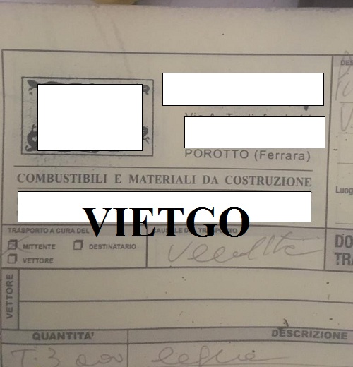 VIETGO xin gửi tới Quý vị thông tin đơn hàng nhập khẩu than đen của ông Gianni – vị khách hàng người Ý.