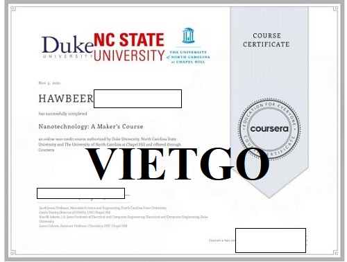 Hình ảnh chứng chỉ hoàn thành chương trình Thạc sĩ ngành Khoa học Vật liệu tiên tiến và Công nghệ Nano mà vị khách hàng đã đạt được
