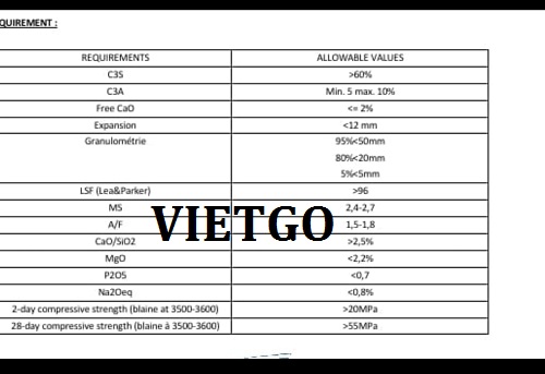 Hiện tại tôi đang muốn tìm kiếm nhà cung cấp uy tín để tiến hành nhập khẩu 40.000 tấn clinker mỗi tháng. Được biết VIETGO có hệ thống các nhà cung cấp tiềm năng trong khu vực nên tôi đã trực tiếp liên hệ và mong muốn phía VIETGO sẽ giúp chúng tôi kết nối với các doanh nghiệp xuất khẩu clinker uy tín tại châu Á. Đơn hàng này chúng tôi đại diện một đối tác tại Bangladesh có nhu cầu nhập khẩu 40.000 tấn clinker mỗi tháng và sẽ ký hợp đồng dài hạn nếu chất lượng sản phẩm tốt. Chúng tôi hiện đang muốn biết giá CFR tới cảng Dakar của Bangladesh. Nếu như giá cả phù hợp thì chúng tôi sẽ tiến hành mở L/C không chuyển nhượng để thanh toán cho lô hàng. Đặc biệt, tôi có một số yêu cầu trong quá trình vận chuyển như sau: