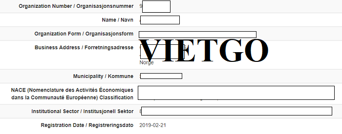 Hình ảnh thông tin công ty vị khách hàng trên trang dữ liệu doanh nghiệp Na Uy
