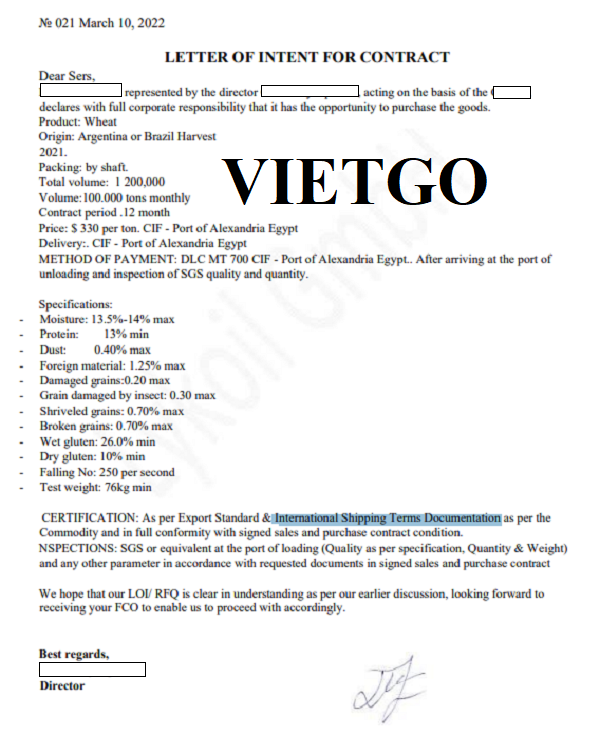 Liên hệ với VIETGO lần này, anh Danilo rất mong muốn nhận được phản hồi về mức giá cạnh tranh từ phía nhà cung cấp của VIETGO. Vậy, Quý nhà cung cấp nào quan tâm đến đơn hàng nhập khẩu lúa mì của vị khách hàng vui lòng liên hệ và báo giá với anh theo địa chỉ thông tin liên lạc dưới đây: