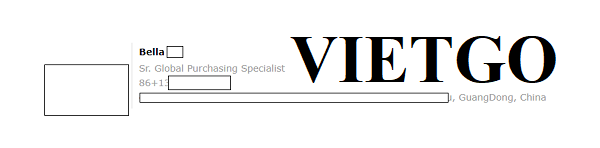 Cô Bella hiện đang nắm giữ chức vụ Chuyên gia mua hàng toàn cầu của Tập đoàn ██████████. Hiện cô đang làm việc tại chi nhánh văn phòng ở Trung Quốc, có địa chỉ tại tầng ██████████ ██████████ ██████████, Quảng Châu, Quảng Đông. Vị khách hàng có phong thái làm việc nghiêm túc, chuyên nghiệp và đề cập chi tiết các yêu cầu đơn hàng lần này. Trao đổi với VIETGO, cô Bella cho biết: “Thời gian này, chúng tôi đang muốn tìm nguồn cung ứng cho 2 loại sản phẩm chủ lực là bít tất và đồ lót để xuất khẩu sang thị trường châu Âu và châu Mỹ. Điểm đến đầu tiên là thị trường Mỹ. Đơn hàng sẽ được phân phối tại các chuỗi cửa hàng bán lẻ của Tập đoàn tại Mỹ. Do đó, chúng tôi hướng tới những sản phẩm chất lượng, giá thành hợp lý để đáp ứng các tiêu chuẩn khắt khe của những thị trường này. Phụ thuộc vào mức giá và chất lượng sản phẩm, chúng tôi sẽ xem xét để nâng số lượng đơn hàng trong lần nhập hàng tiếp theo. Rất mong nhận được sự hợp tác nhiệt tình từ phía các nhà cung cấp thông qua dịch vụ của các bạn”.