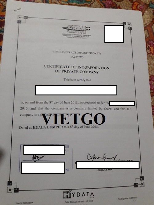 Hình ảnh giấy đăng kí kinh doanh của công ty vị khách hàng