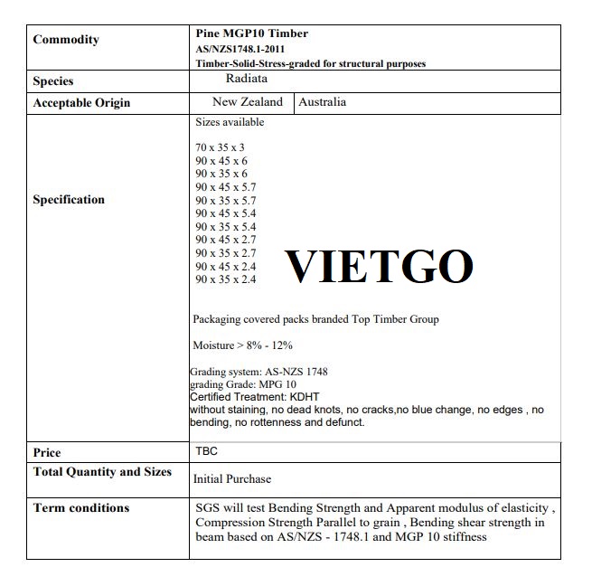 VIETGO xin gửi tới Quý nhà cung cấp thông tin về đơn hàng gỗ thông xẻ đến từ vị khách hàng tiềm năng, chị Viki.