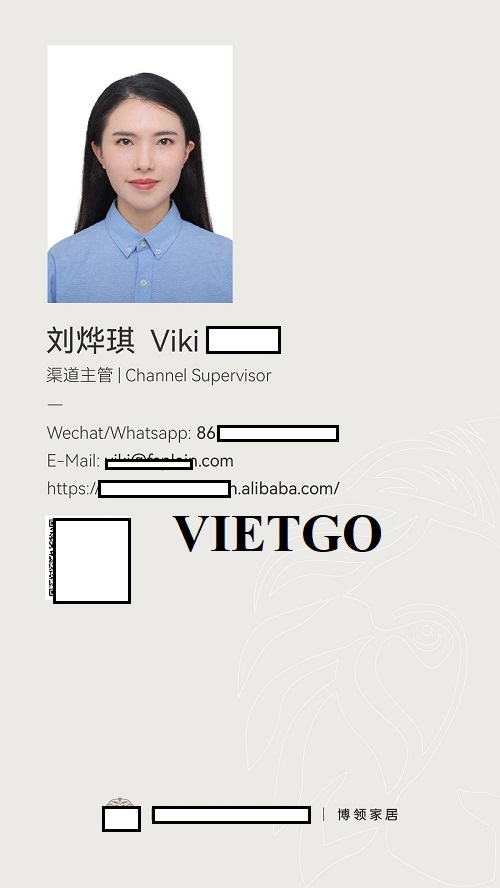 Chị Viki hiện là đại diện đến từ Tập đoàn ██████████, một Tập đoàn nội thất lớn có trụ sở tại Trung Quốc. ██████████ được thành lập vào năm 2006, tập trung chủ yếu vào nghiên cứu và phát triển, sản xuất và kinh doanh nội thất tổng thể cao cấp cho gia đình (sofa, giường, bàn ăn, ghế đơn, tùy chỉnh toàn bộ ngôi nhà, v.v.). ██████████ có rất nhiều thương hiệu riêng cho mình. ██████████ là đại diện của sự tinh tế và sang trọng trong làng nội thất, là thương hiệu ánh sáng hiện đại cao cấp nổi tiếng trong ngành về sự lãng mạn và cá tính. Phong cách thiết kế đặc biệt, vẻ đẹp độc đáo và tự do mạnh mẽ đã chiếm được sự yêu thích của một thế hệ trẻ mới trên thế giới. ██████████ là thương hiệu nội thất hiện đại cao cấp tập trung vào chủ nghĩa tối giản của Ý. Kỹ thuật thủ công tinh xảo, chất liệu vải cao cấp nguyên bản cùng phong cách thiết kế tối giản và mạnh mẽ khiến nó được các chuyên gia thiết kế trong và ngoài nước đánh giá cao.