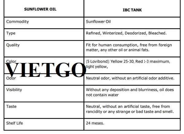 Thông tin chi tiết về sản phẩm dầu hướng dương xin được gửi đến Quý doanh nghiệp như sau: