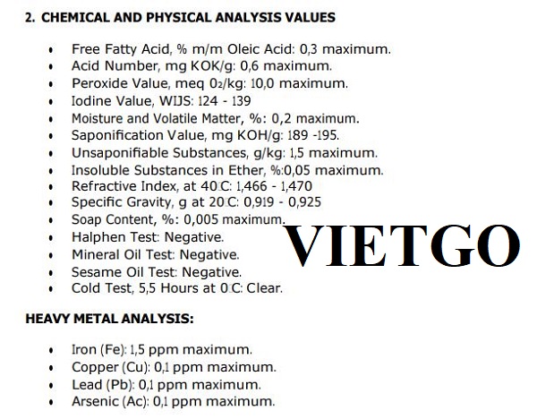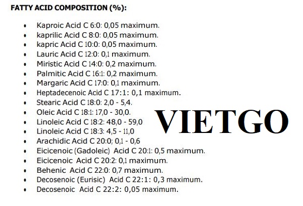 Hàm lượng Axit béo tự do, Axit oleic: Tối đa 0,3% m/m