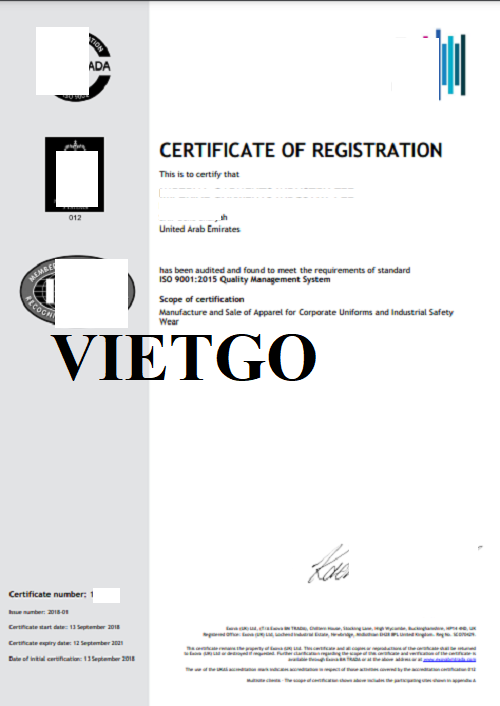 Hình ảnh giấy đăng ký chứng nhận ISO 9001:2015 của công ty vị khách