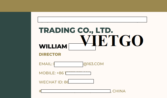 Ông William – Giám đốc của công ty ██████████ Trading Co.,Ltd. – hiện đang có nhu cầu tìm nhà cung cấp cho đơn hàng sắn lát của công ty ông đến thị trường Trung Quốc. Ông William là một thương nhân đã có nhiều năm kinh nghiệm trong xuất nhập khẩu.