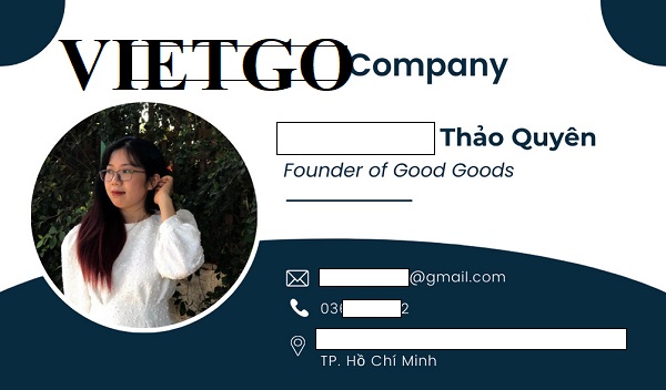 Là Giám đốc tiếp thị của Học viện ██████████, chị Thảo Quyên đã học hỏi và tích lũy được rất nhiều kinh nghiệm trong suốt quãng thời gian làm việc. Do có thêm niềm đam mê xuất nhập khẩu, chị đã nung nấu giấc mơ thành lập công ty của riêng mình với mục đích góp một phần vào thúc đẩy sự phát triển của kinh tế xuất nhập khẩu Việt Nam. Chị Quyên đã tham gia khóa học và đăng ký gói dịch vụ của VIETGO để mở rộng vốn kiến thức của bản thân về xuất nhập khẩu. Hiện tại, chị đang trong quá trình hoàn thành các thủ tục cuối cùng để thành lập công ty ██████████ Company. Công ty sẽ có trụ sở tại quận Bình Thạnh, thành phố Hồ Chí Minh. Mục tiêu của ██████████ Company là cung cấp cho khách hàng với những sản phẩm có chất lượng cao nhất mà vẫn giữ được hương vị nguyên bản. Không chỉ vậy, ██████████ Company đang hướng tới và giữ vững tầm nhìn chiến lược “Phân phối sản phẩm đến mọi nơi trên thế giới”. Sản phẩm chính của công ty là các mặt hàng chanh leo, gừng sấy, tinh bột sắn, chuối, v.v.