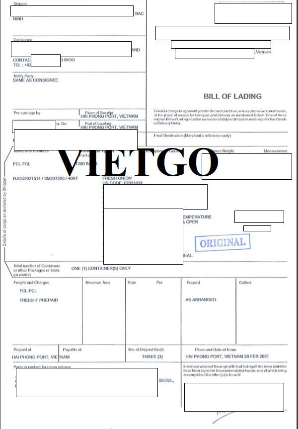 Hình ảnh xuất khẩu sản phẩm hành từ Việt Nam đến Hàn Quốc của công ty vị khách hàng