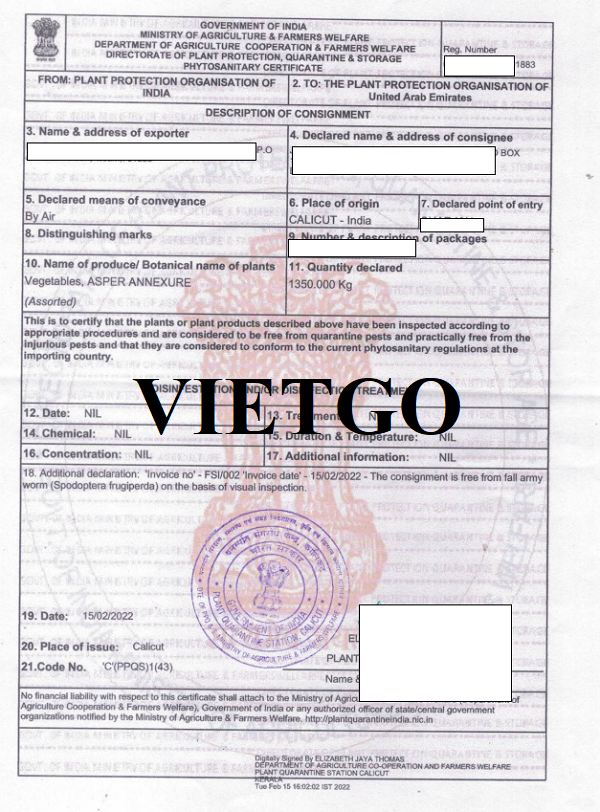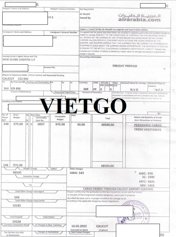Dưới đây là vận đơn hàng không, phiếu đóng gói hàng hóa, hóa đơn thanh toán và giấy chứng nhận xuất xứ hàng hóa của đơn hàng nhập khẩu trái cây tươi từ Ấn Độ tới UAE của vị khách hàng ngày 16/02/2022: