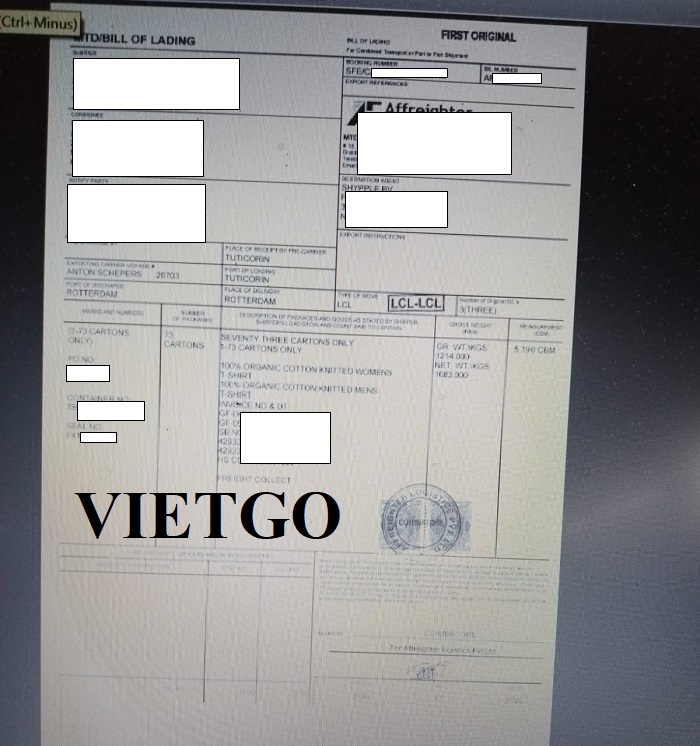 Dưới đây là hình ảnh bản vận đơn nhập khẩu áo phông từ Ấn Độ vào Hà Lan vào ngày 12/08/2020 mà công ty vị khách hàng đã thực hiện thành công: