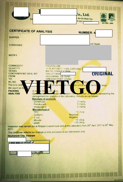 Hình ảnh chứng nhận hun trùng kiểm dịch của công ty vị khách hàng