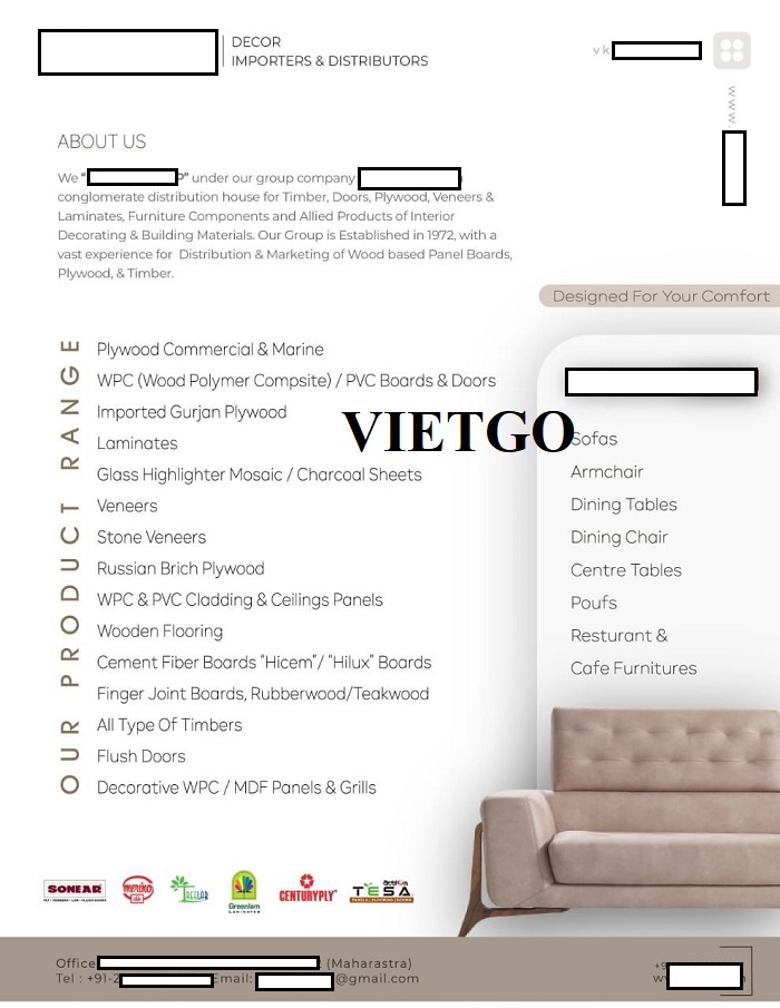 Nó có thể dùng để làm nguyên liệu có thể gia công nội - ngoại thất từ gỗ. Đây cũng là yêu cầu hiện tại của ông Vikram vị khách hàng người Ấn Độ vừa qua đã liên hệ với VIETGO và trao đổi về dự án của mình.