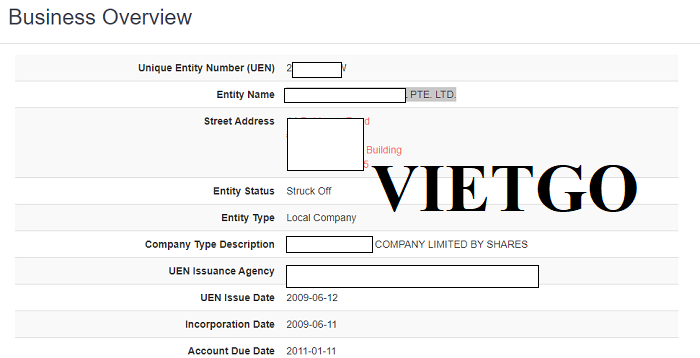 Hình ảnh thông tin chi tiết về công ty ██████████ Pte Ltd.