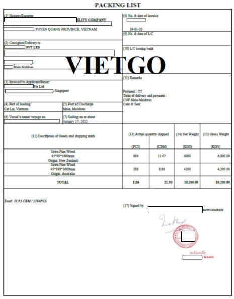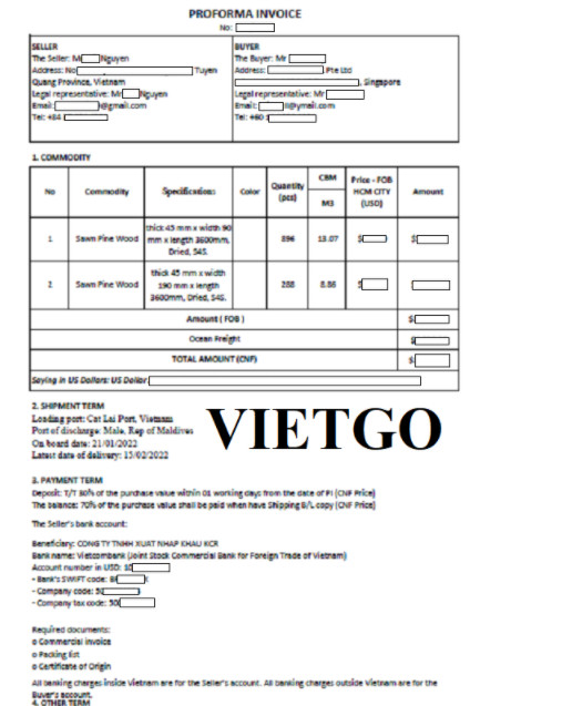 Hình ảnh một số chứng từ nhập khẩu của công ty vị khách hàng đối với đơn hàng nhập khẩu gỗ thông xẻ từ Việt Nam, được thực hiện thành công vào tháng 01 năm 2022