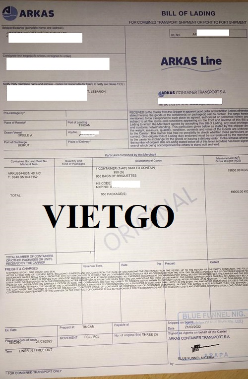 Hình ảnh bản vận đơn nhập khẩu than từ Lào của công ty vị khách hàng