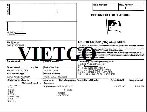 Đối với mặt hàng vải may mặc, anh Diego thường xuyên nhập khẩu số lượng lớn từ các thị trường quốc tế, trong đó nhiều nhất là Brazil và Trung Quốc. Cotton và vải tổng hợp là 2 loại vải chính mà anh Diego tập trung phân phối. Lần gần nhất, vào ngày 11/11/2021, vị khách hàng đã nhập khẩu thành công đơn hàng vải từ Thượng Hải – Trung Quốc sang Argentina để phục vụ cho mục đích kinh doanh của mình.