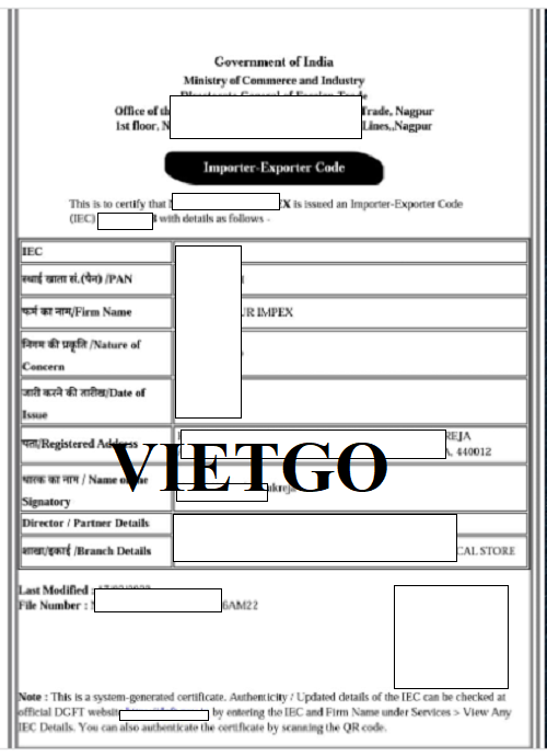 Hình ảnh mã xuất-nhập khẩu của công ty vị khách hàng