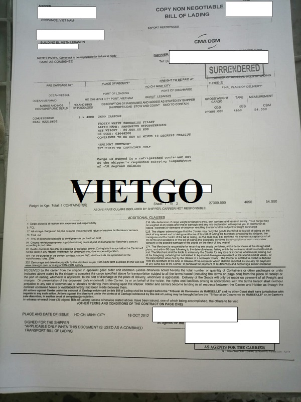 Qua tìm hiểu về vị khách hàng, VIETGO được biết ông Manouk sinh ra và lớn lên tại Canada. Ông tốt nghiệp đại học Toronto chuyên ngày Quản trị Kinh doanh và bắt đầu xây dựng sự nghiệp từ thời điểm đó. Hiện tại, ông đã cùng gia đình của mình chuyển tới Li-băng sinh sống và làm việc. Công ty của ông là nhà nhập khẩu và phân phối lớn về các loại hải sản như cá, tôm, mực, bạch tuộc, v.v. Ông Manouk đã hoạt động trong lĩnh vực này từ năm 1979 và đến nay đã nhập khẩu được những sản phẩm chất lượng cao với giá thành cạnh tranh từ nhiều quốc gia trên thế giới trong đó có Việt Nam. Dưới đây là một số giấy tờ cho chuyến hàng nhập khẩu 26 tấn hải sản từ cảng Hồ Chí Minh, Việt Nam đến cảng Beirut, Li-băng của công ty vị khách hàng: