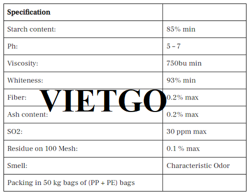 TÊN SẢN PHẨM: TINH BỘT SẮN