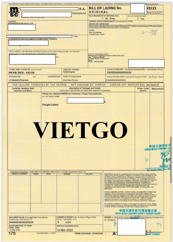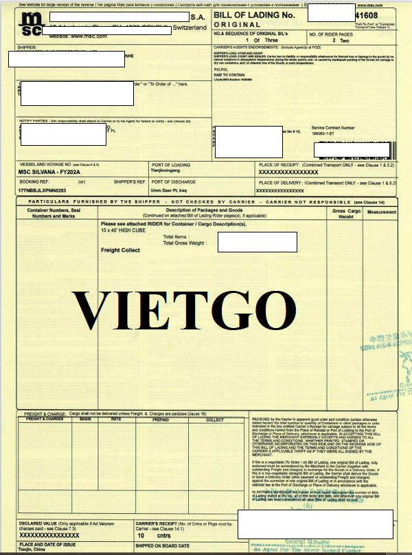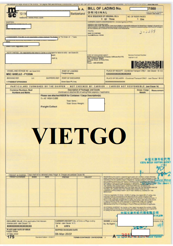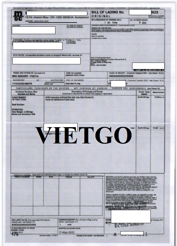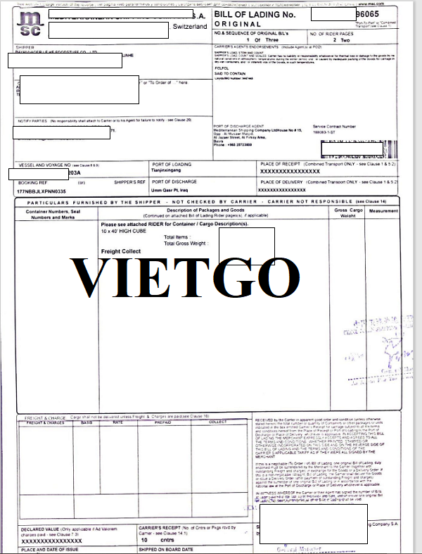 Dưới đây là hình ảnh 5 bản vận đơn đường biển nhập khẩu các loại hạt dinh dưỡng từ Trung Quốc đến Iraq của công ty do vị khách hàng đại diện: