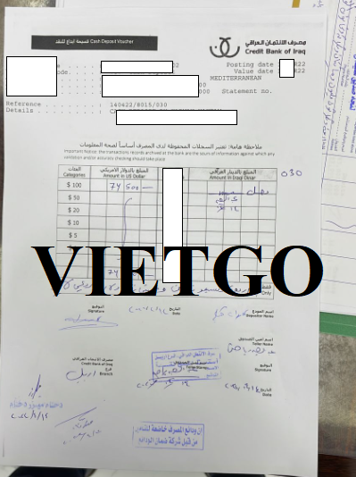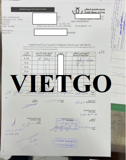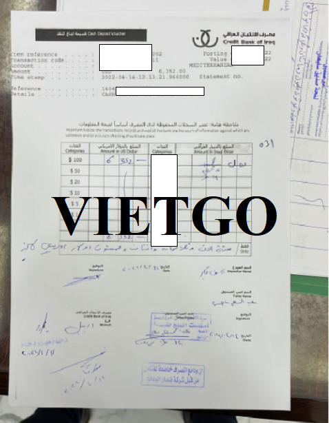 Hình ảnh điện chuyển tiền từ ngân hàng cho đơn hàng của công ty do vị khách hàng đại diện