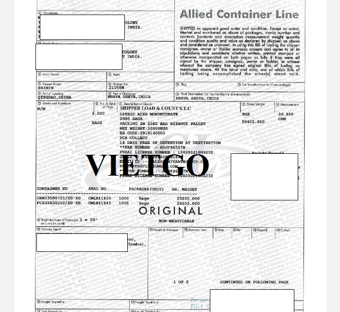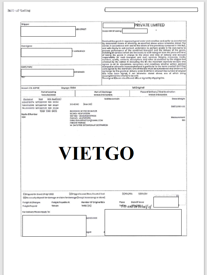 Dưới đây là hình ảnh một số bản vận đơn gần nhất nhập khẩu hóa chất, nhựa PVC, xe tải từ Trung Quốc vào Ấn Độ mà công ty vị khách hàng đã thực hiện thành công: