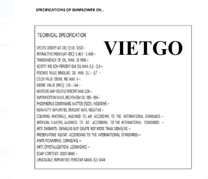 VIETGO xin gửi tới Quý nhà cung cấp thông tin về đơn hàng dầu hướng dương đến từ vị khách hàng tiềm năng, ông Attila.