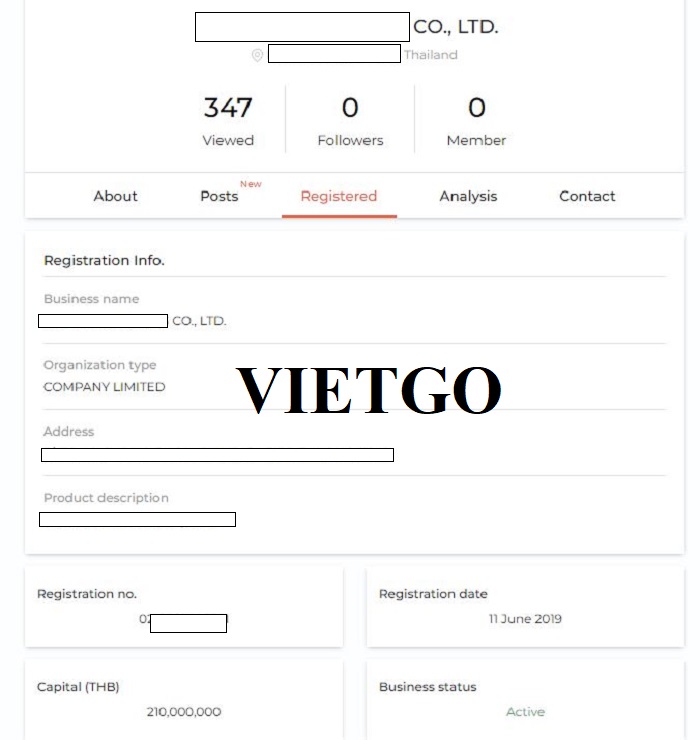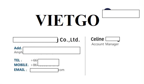 Để mở rộng thị trường, Tập đoàn còn mở thêm nhà xưởng sản xuất thiết bị vệ sinh mang tên ██████████ Co., Ltd. tại████████████████████, huyện ██████████, tỉnh ██████████, Thái Lan vào ngày 11 tháng 06 năm 2019. Nhà máy này có mã số đăng ký là ██████████ và số vốn đăng ký ban đầu là 210.000.000 Baht Thái. Ngoài sản xuất thiết bị vệ sinh, nhà máy còn thường xuyên nhập gỗ xẻ từ các khu vực lân cận để sản xuất đồ nội thất gỗ và phân phối cho thị trường nội địa, Mỹ, Đài Loan, Singapore, v.v. Đấy chính là lý do tôi liên hệ với các bạn cho đơn hàng nhập khẩu gỗ xẻ ngày hôm nay. Thông qua dịch vụ của VIETGO, tôi hy vọng sẽ sớm nhận được báo giá từ phía các nhà cung cấp để đẩy nhanh tiến độ dự án”.