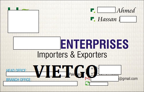 VIETGO xin gửi tới Quý nhà cung cấp về thông tin đơn hàng. Ông Hassan rất mong sẽ nhanh chóng nhận được liên hệ của các nhà cung cấp do sự giới thiệu của VIETGO. Ông luôn thể hiện sự nhiệt tình và nghiêm túc với đơn hàng trong suốt quá trình trao đổi. Quý nhà cung cấp quan tâm đến đơn hàng trên, vui lòng liên hệ ngay cho ông theo địa chỉ liên lạc bên dưới.