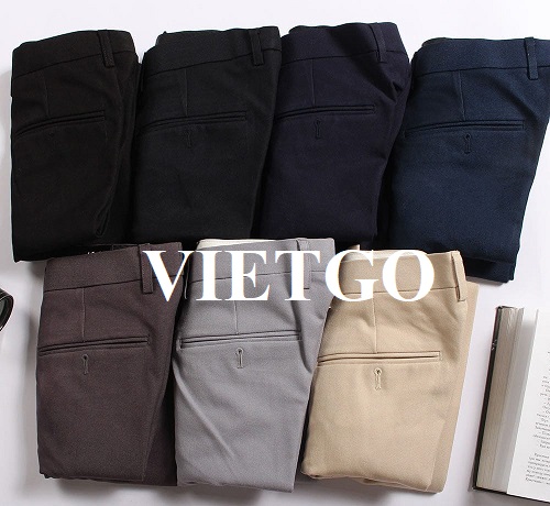 VIETGO xin gửi tới Quý nhà cung cấp thông tin đơn hàng của cô Lilly. Cô Lilly đang cần nhập khẩu mặt hàng quần âu dành cho nam sang Nam Phi.